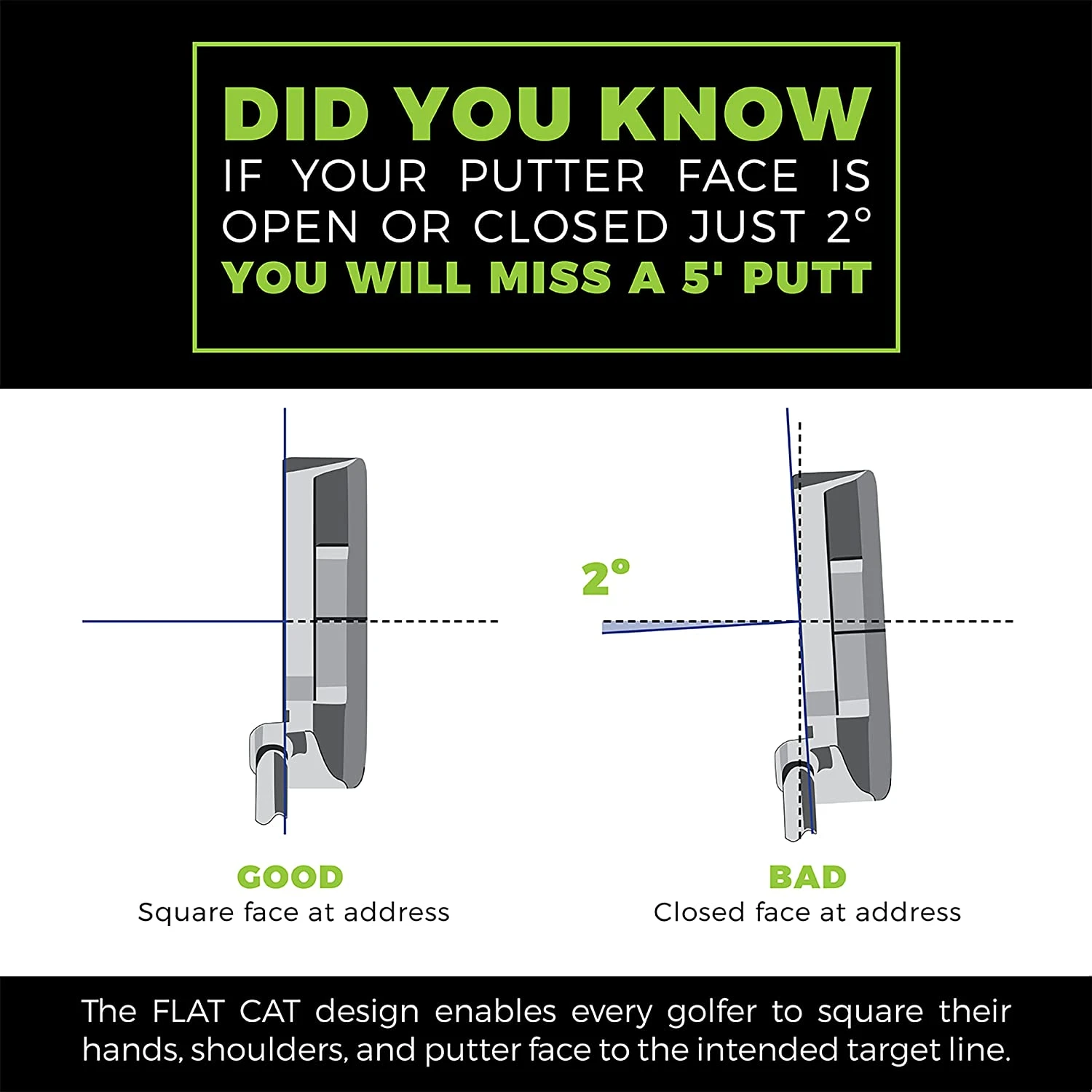 The revolutionary FLAT CAT® putter grip features a classic pistol shape with a flat top and rounded bottom that conforms to the palm of your hand. The grip offers a more traditional feel while reducing wrist break and hand action for ultimate feel and performance.