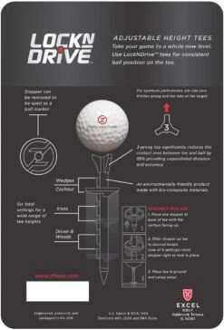 Zero Friction Lock N Drive 3-Prong Golf Tees (3-1/4 Inch, White, Pack Of 18)