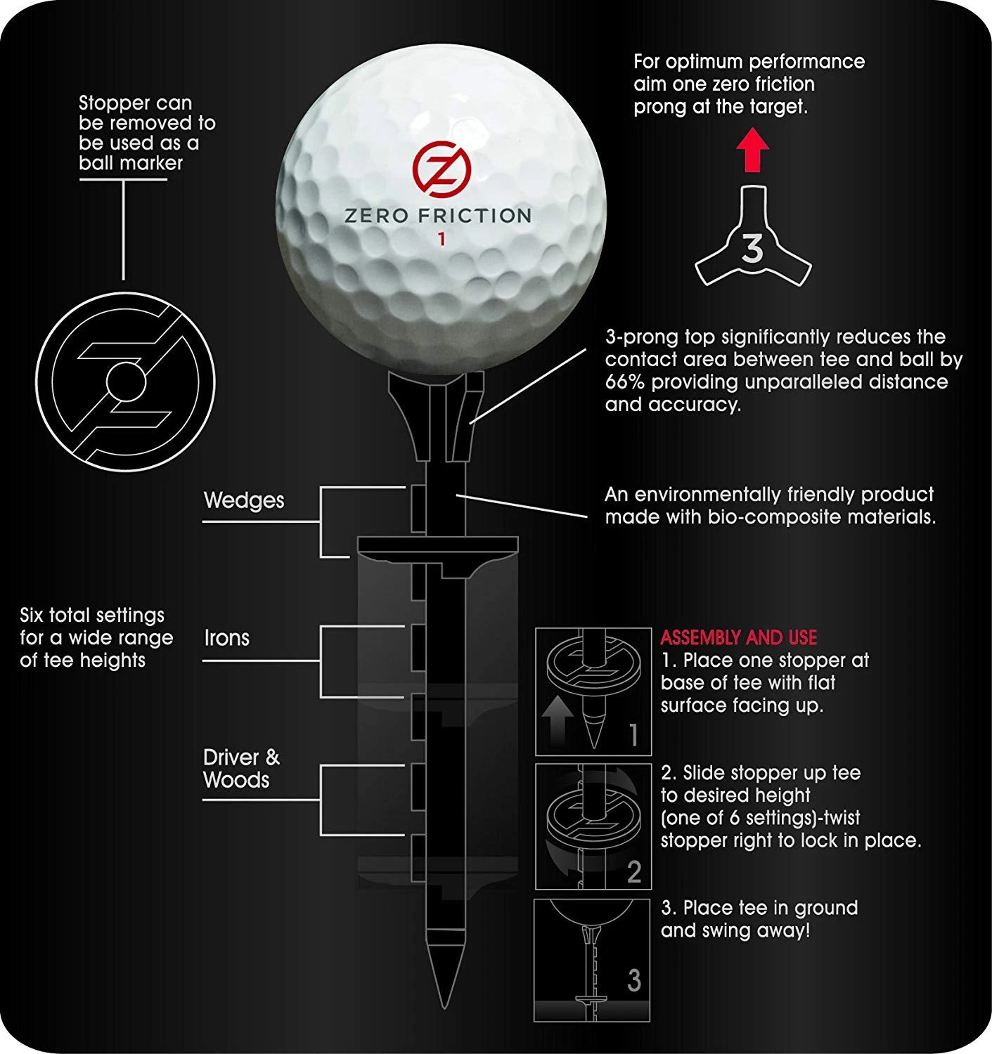 - The 3-prong top significantly reduces the contact area between the ball and tee by 66-Percent providing unparalleled distance and accuracy.